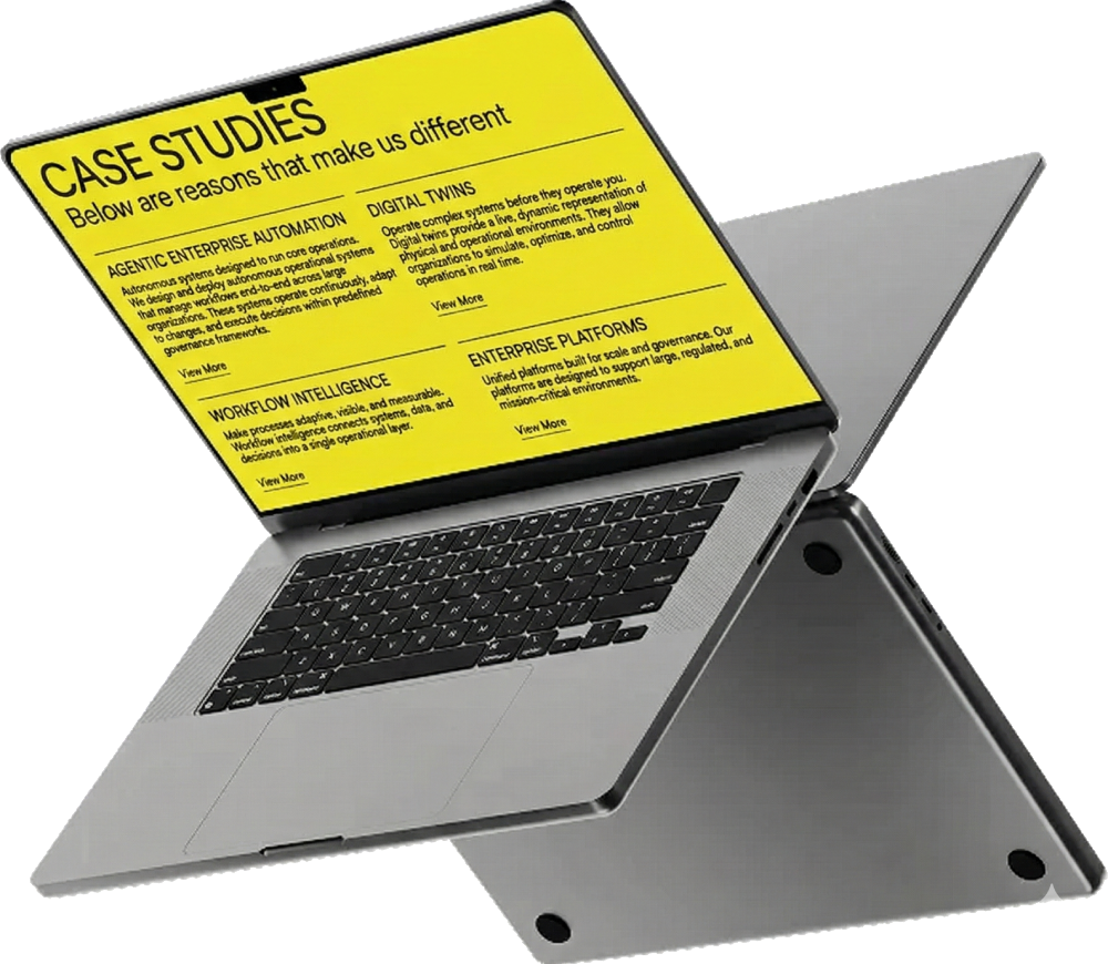 It is about redesigning how organizations operate. We help governments and enterprises replace fragmented, manual, and slow processes with autonomous operating systems that execute, adapt, and scale across departments, infrastructures, and territories.